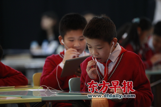 昨日,黄浦区卢湾一中心小学,学生在云课堂上使用Pad学习。早报记者张栋 图